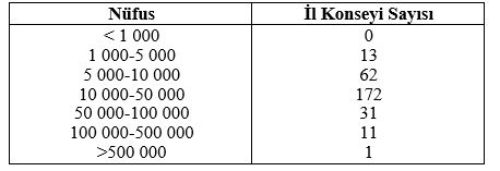 Belli Nüfus Aralıklarında göre İl Konseyi sayıları