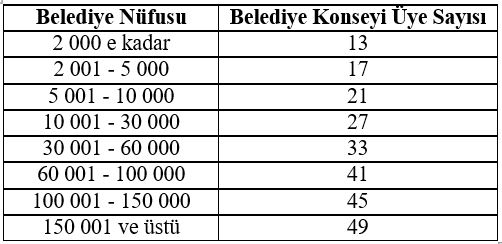• 15 üye, nüfusu 50 001 den fazla olan kişiye kadar olan belediye topluluklarında.